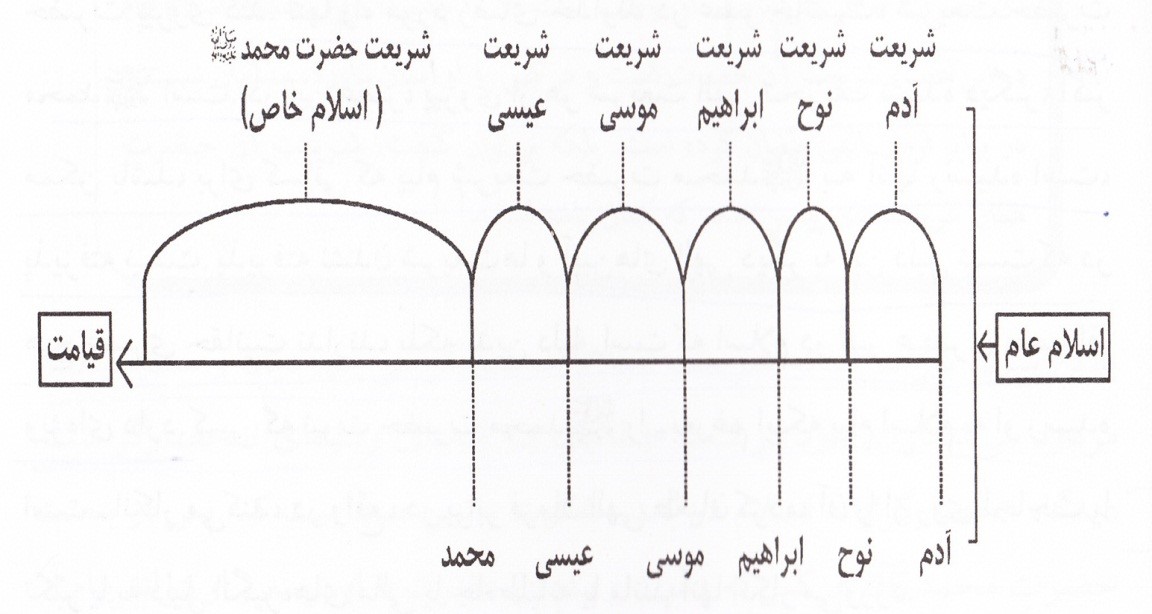 همه شریعت های انبیا جلوه ها و مصداق های اسلام عام هستند. نمودار پایین شاید به فهم بهتر این موضوع کمک کنه: